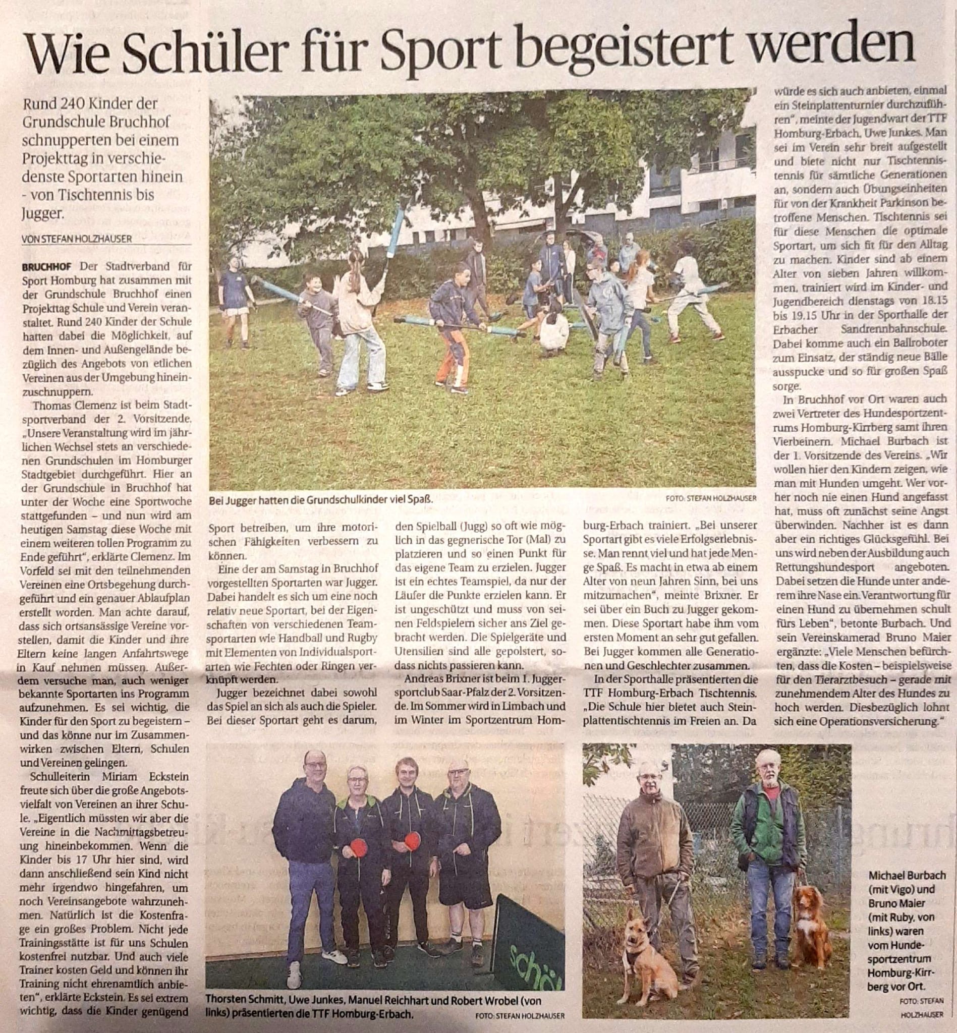 ERBACH | Am Sonntag war in der Sporthalle der Gemeinschaftsschule Neue Sandrennbahn im Stadtteil Erbach richtig viel los. Die dort ansässigen Tischtennisfreunde (TTF) Homburg-Erbach hatten in Zusammenarbeit mit dem Landessportverband sowie der „Aktion Mensch“ dazu aufgerufen, das deutsche Tischtennis-Sportabzeichen zu erwerben. Jeder, der sich einfach bewegen oder in schöne Sportart hineinschnuppern wollte, war willkommen und konnte dabei feststellen, ob Tischtennis für einen die richtige Sportart wäre. Natürlich waren auch Leute dabei, die seit Jahren selbst diese Sportart betreiben.