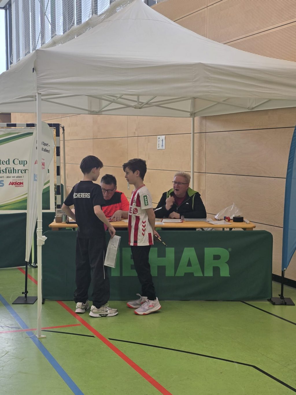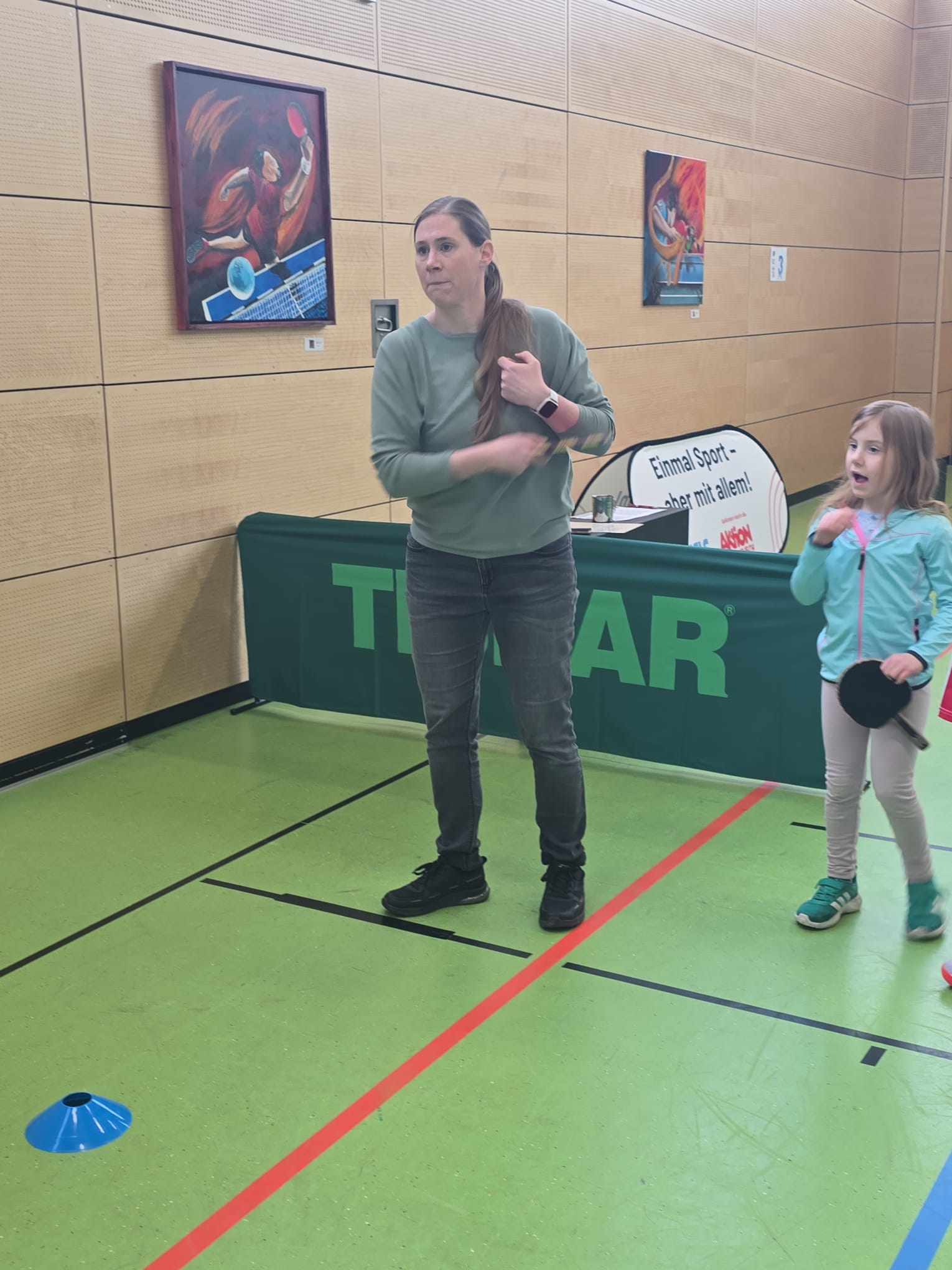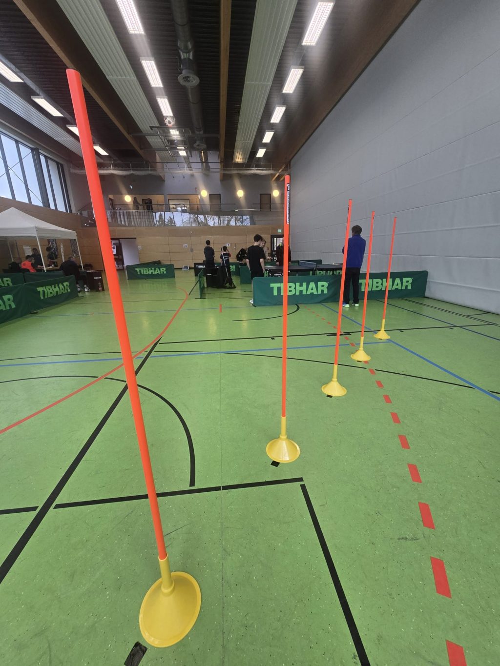 Während am Vortag an gleicher Stelle noch Bundesligaprofis zu bewundern waren, standen nun Geschicklichkeit, Ballgefühl und Koordination im Mittelpunkt. Insgesamt zwölf Helferinnen und Helfer der TTF Homburg-Erbach sorgten für einen reibungslosen Ablauf und betreuten einen abwechslungsreichen Parcours mit acht Stationen, der bereits vorbereitet war, als die ersten Teilnehmenden die Halle betraten.